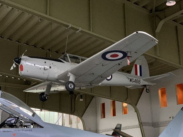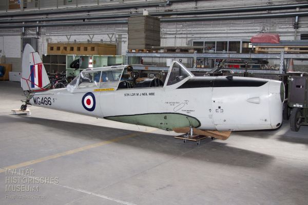 Das hier ausgestellte Flugzeug ist eine der beiden zuletzt in Gatow stationierten Maschinen (Registrierungsnummer WG466; die Schwestermaschine: WG486). Die Piloten Mike Neil und John Hurrel flogen die Maschinen am 17. Juni 1994 nach Laarbruch aus und nahmen dem Flugplatz Gatow somit die letzten beiden auf ihn registrierten Flugzeuge. Die WG486 wurde als Schulflugzeug für einmotorige Maschinen mit Heckspornfahrwerk (Tailwheel) dem Battle of Britain Memorial Flight zugeteilt, wo sie bis heute in dieser Rolle eingesetzt wird. Die WG466 hingegen flog bereits am 29. Juli 1994 zurück nach Berlin. Diesmal landete sie aber nicht mehr in Gatow, sondern in Tempelhof, wo sie an das Alliiertenmuseum übergeben wurde. Hier wurde sie zwei mal ausgestellt: einmal 1994 und ein zweites mal von 1998 bis 2001. Nach einem längeren Verbleib im Depot wurde sie als Leihgabe an ihre alte Heimat auf dem Flugplatz Berlin-Gatow zurückgegeben, wo sie ab Mai 2014 im Militärhistorischen Museum ausgestellt wird.