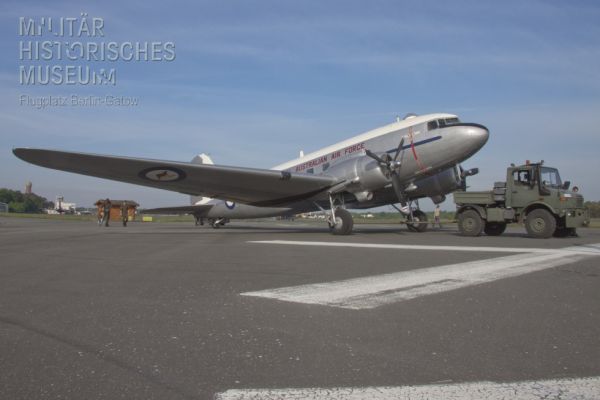 Die australische Regierung schenkte die hier ausgestellte Maschine mit der Kennung A65-69 symbolisch am 3. Juni 1980 an die Bevölkerung Berlins, um an die Leistungen der australischen Luftwaffe 1948/49 zu erinnern. Sie war vom 19.3.1948 bis mindestens zum 22.2.1951 im Dienst des 86 Wing RAAF (Royal Australian Airforce). Aus diesem Geschwader kamen auch die australischen Dakota-Crews, die bei der Berliner Luftbrücke mitflogen. Sie stand bis 1997 im Hangar 8 des Flugplatzes Berlin-Gatow; bis 1994 unter der Obhut der britischen Royal Airforce, dann als Leihnahme der in Gatow stationierten 3. Luftwaffendivision der Bundeswehr (das Museum für Verkehr und Technik, heute: Deutsches Technikmuseum Berlin wurde 1994 Eigentümerin der Maschine). Nach der Auflösung der 3. Luftwaffendivision trat das Luftwaffenmuseum der Bundeswehr als neue Leihnehmerin ein. Nach umfangreichen Restaurierungsmaßnahmen durch das Luftwaffenmuseum wurde sie am 12. Mai 1998 vor der Hauptwache der General-Steinhoff-Kaserne in Berlin-Gatow aufgestellt, wo sie als so genannter ‚Gateguard’ an die britische Nutzung des Flugplatzes erinnerte. Es folgten weitere Restaurierungen 2002 und 2012. Seit dem 12.5.2012 steht sie, für alle Berliner zugänglich, vor dem Towergebäude des Museums auf dem Flugplatz Berlin-Gatow. Hier wurden früher die Luftbrückenflugzeuge entladen.