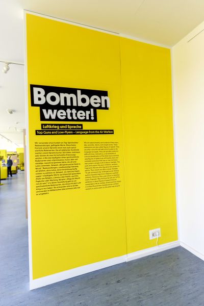 Das Thema blieb bis jetzt meist „unter dem Radar“. Dabei gibt es zum Thema „Luftkrieg und Sprache“ Dutzende Redensarten, ob man „am Boden zerstört ist“, „den Nachbrenner einschaltet“ oder „sich verfranzt hat“. Die Ausstellung „Bombenwetter!“ des MHM Berlin Flugplatz-Gatow präsentiert die schönsten Beispiele in anschaulicher Weise und erklärt dazu die Hintergründe. Das moderne Fliegen selbst faszinierte die Menschen, und der Luftkrieg wurde von Beginn an in populären Medien als ritterlicher Kampf stilisiert. So wanderten Fachbegriffe und Redensarten aus der Flieger- in die Alltagssprache.
