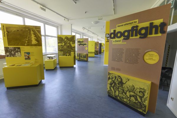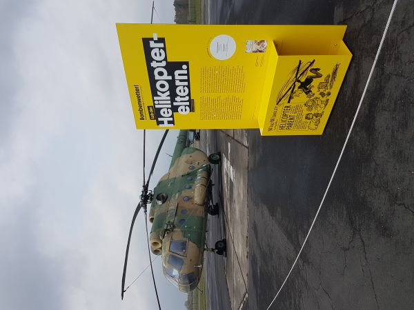 Den Hauptteil der Schau finden Sie im Hangar 3 mit etwa 30 sprichwörtlichen Redensarten, zu denen auch der „geistige Tiefflieger“, „der Dogfight“ oder „die Reißleine ziehen“ gehören. Auf dem Außengelände ist zu sehen, warum man „Petting statt Pershing“ sagte, was man „auf dem Schirm hat“ oder welche Fülle an „Booster“-Produkten es längst gibt.