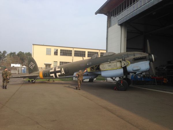 Genaueres wissen wir nicht über die Geschichte unserer Maschine, nur so viel: Gebaut 1951 flog sie zunächst mit der Kennung B.2H-109. 1957 wurden die Junkers-Jumo-Motoren durch Rolls-Royce Merlin-Motoren ersetzt, fortan flog sie mit der Kennung B.2I-117. Beide Kennungen weisen auf die Nutzung als Mittlerer Bomber hin.